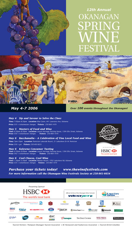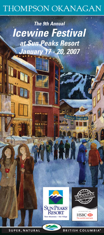 In 2006 she was commissioned to paint the cover for the Okanagan Spring Wine Festival guide (below) and the next year one of her paintings graced the cover of the 2007 Icewine Brochure (right).